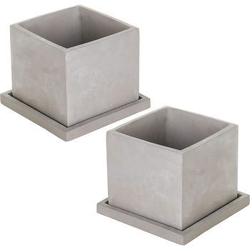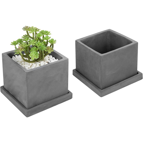 Pot tanaman sukulen persegi Mini, Pot tanaman dalam ruangan semen abu-abu dengan drainase termasuk nampan yang dapat dilepas